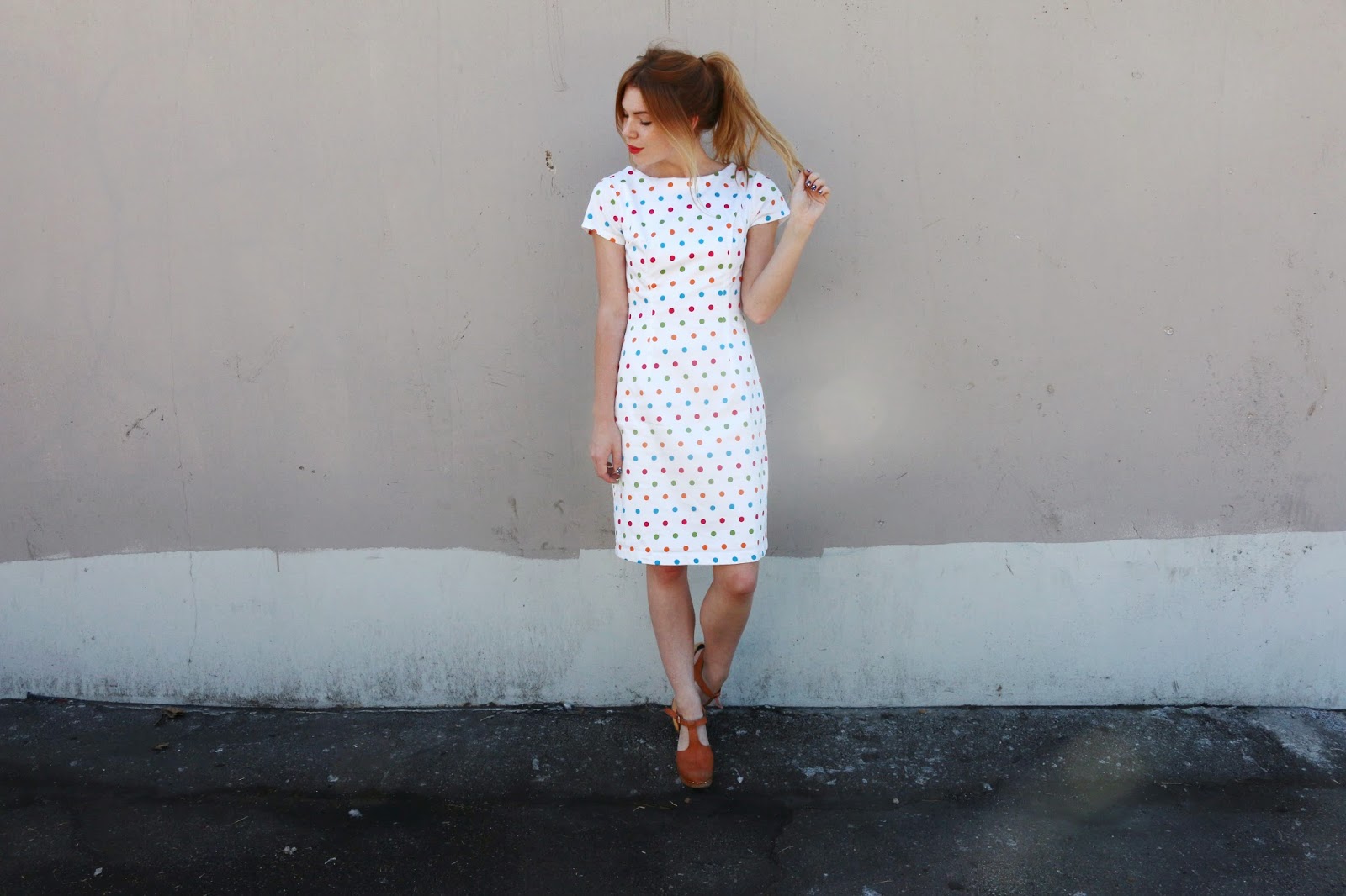SWELL dress / GO SCRATCH IT nail wraps / thrifted clogs / WESSLEY NYC bag