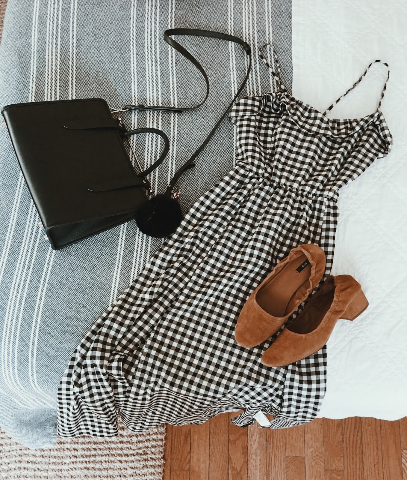 Urban Outfitters Gingham Dress (sold out) / MANGO heels / vintage bandana