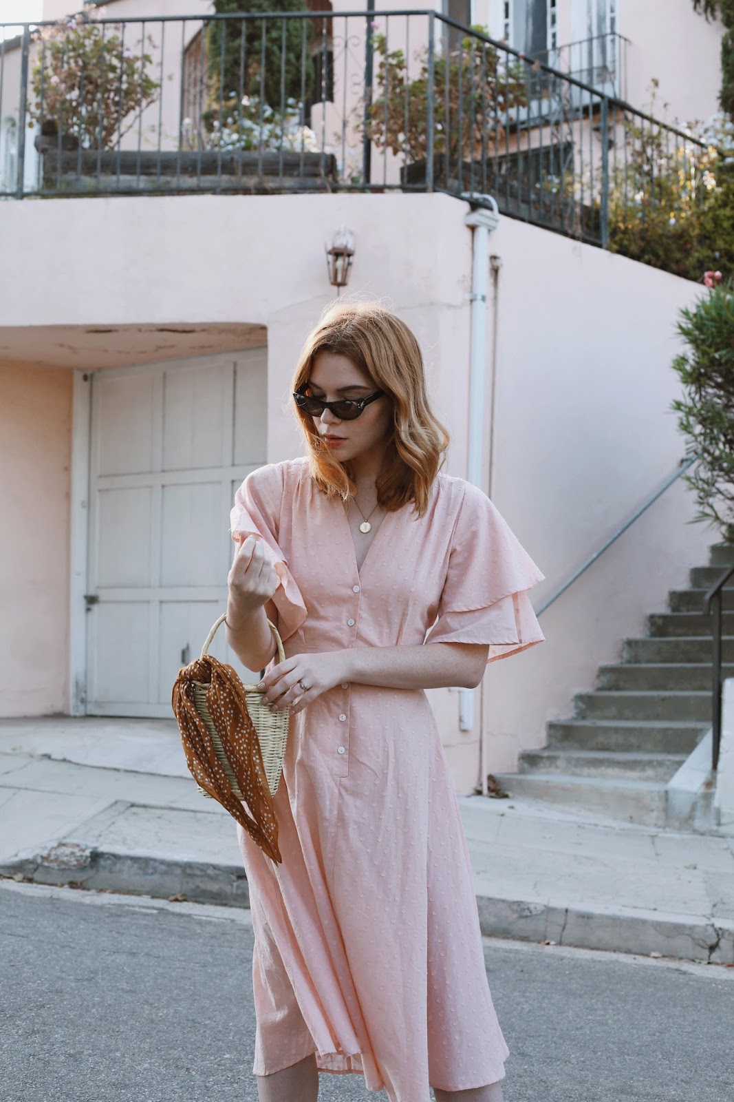 UO eyelet blouse / LykkeWullf trousers / Bembien Rose Bag / Marais sandals