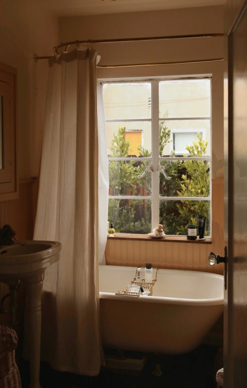 Here’s what we did; we bought two of these pipes (typically used for housing cables) and spray painted them with this texturized paint to make them look more expensive and as though they were solid rather than hollow. He used this coupling (also spray painted) to join the two pipes together, and hung them with 5 of these brackets. And that’s it. We still need to find a finial for the ends of the rod, but I’m willing to hunt around secondhand for something unique and inexpensive.